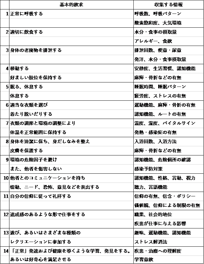 看護記録のアセスメントでヘンダーソンの理論を用いる場合、基本的欲求に影響を与える「常在条件」を考慮に入れなければいけません。
